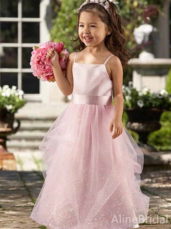 Gorgeous Light Pink Spaghetti Strap A-line Long Flower Girl Dresses, FGS177
