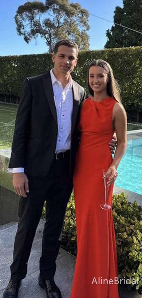 Simple Red Sleeveless Mermaid Long Prom Dress, PD381993