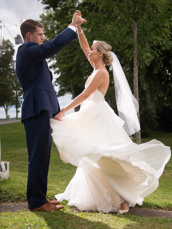 Simple V Neck Backless A Line Organza Floor Length Long Wedding Dresses, WD1110